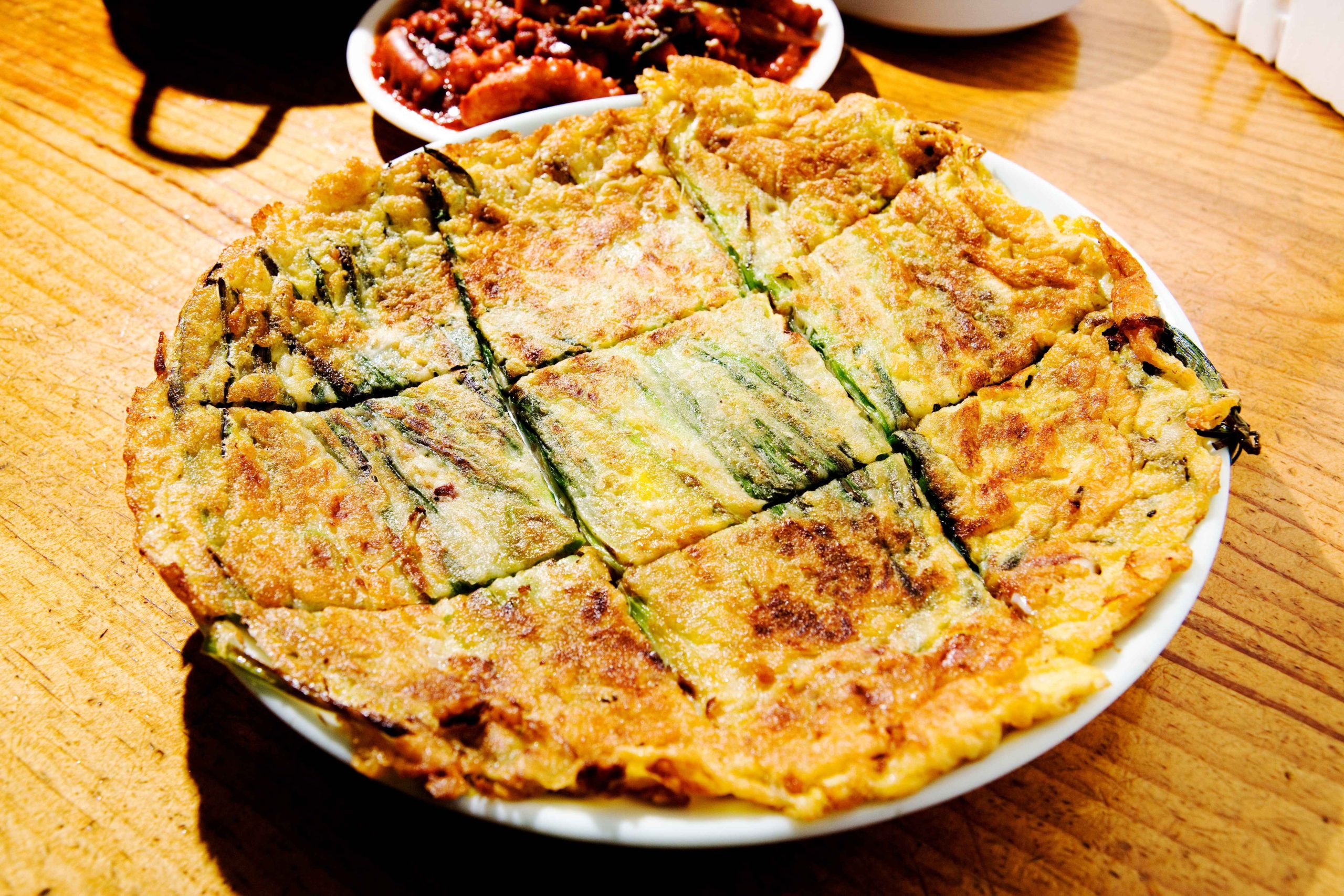 Makanan ini terkenal pada musim liburan Korea. Jenis – jenis panekuk atau Jeon yang tersedia adalah kimchijeon (panekuk kimchi), haemul pajeon (panekuk seafood dan daun bawang), gogi wanjajeon (bola daging berlapis tepung yang digoreng), dongtaejeon (fillet ikan berlapis tepung yang digoreng), dan nokdujeon (panekuk kacang hijau).