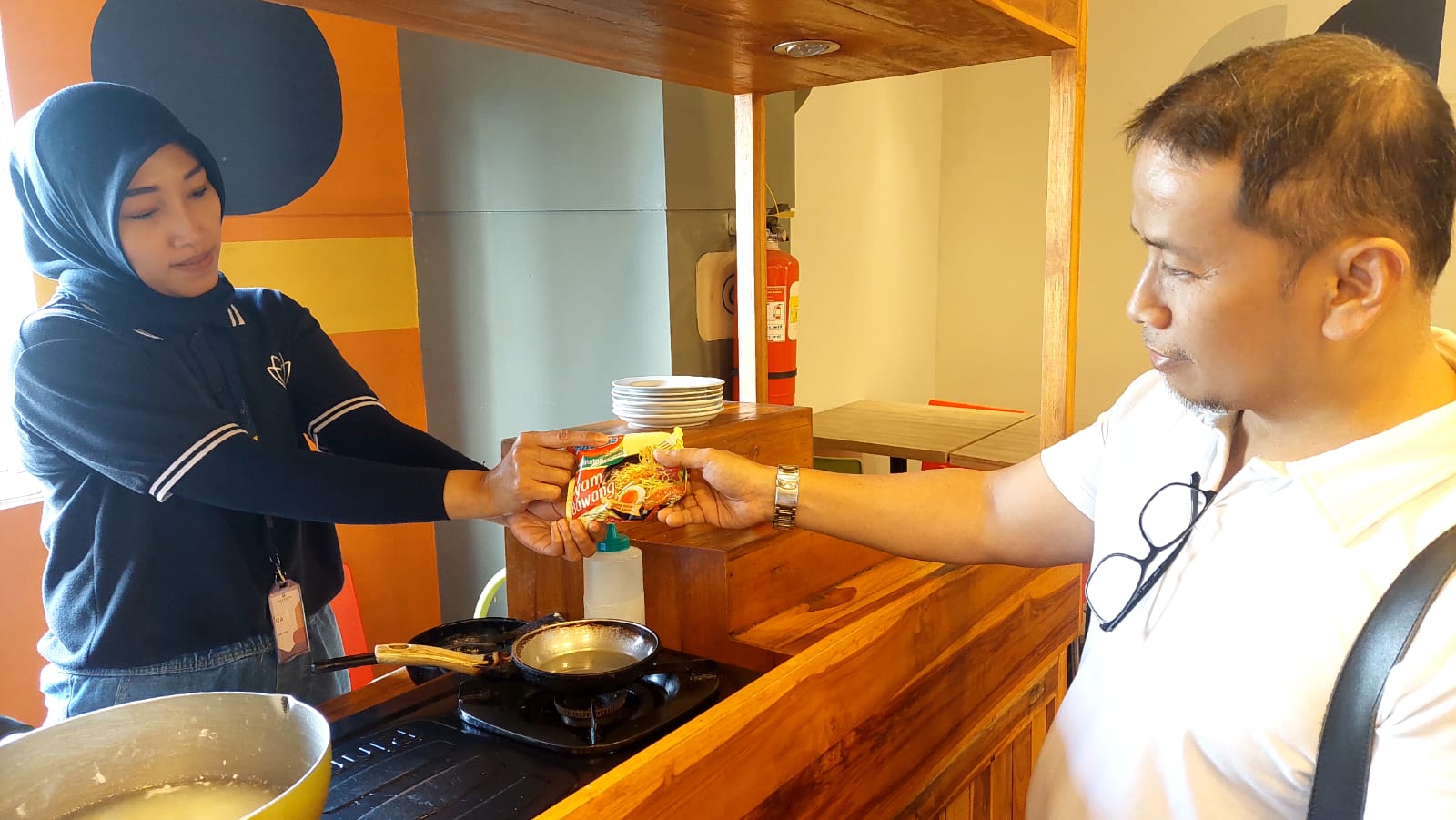 Bagi pecinta mie instan, petugas resto akan menyiapkannya di noodle corner (foto joseph)