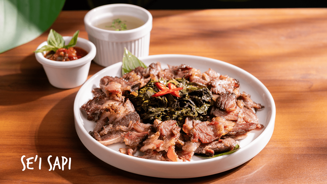 Bandung, rexnewsplus.com – Sei sapi merupakan hidangan khas Indonesia yang berasal dari Nusa Tenggara Timur (NTT). Daging sapi yang diiris tipis memanjang  bentuk atau teksturnya seperti bacon namun sedikit lebih tebal. Dengan dibumbui garam dan rempah lalu di asap dengan kayu khusus, bukan omong kosong dijamin maknyussss ketika disantap dengan nasi hangat.