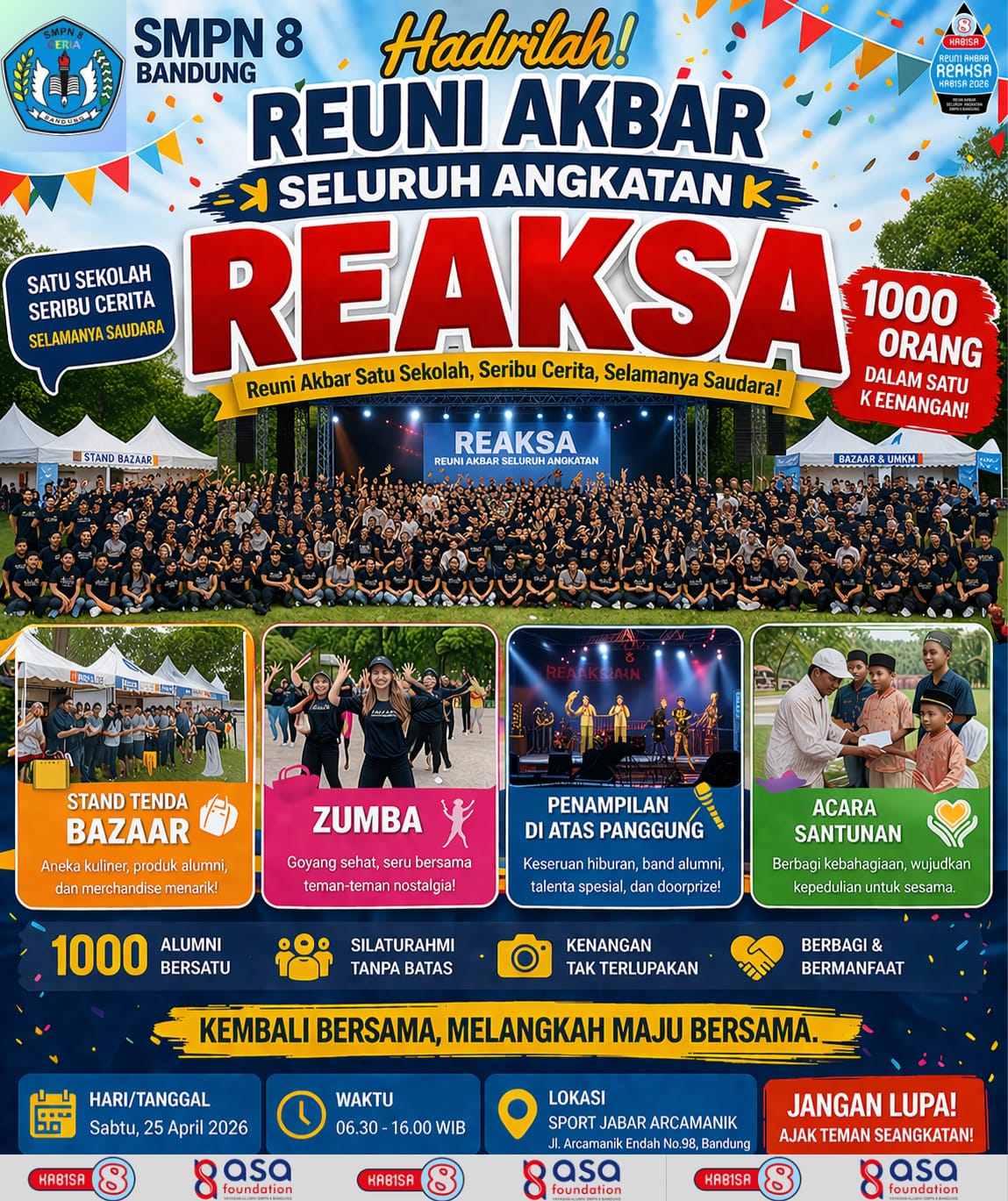 Acara yang bertajuk Reaksa – REuni AKbar Seluruh Angkatan – ini digagas dan dikomandani oleh Ahmad Rahmat Purnama, mengambil sebuah tema ; Satu Sekolah Seribu Cerita Selamanya Saudara.
